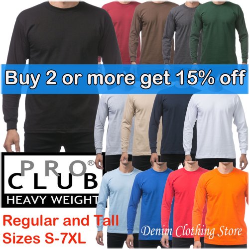 Pro Club Men's Heavyweight Cotton Long Sleeve Crew Neck T-Shirts S~7XL ProClub