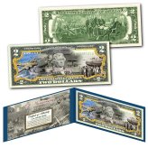 The bill is a genuine $2 bank note, with Navy images and their motto displayed under the serial number. Due to the amazing Laser Line method used to overlay the gold leaf process, the holographic images look life-like in person.